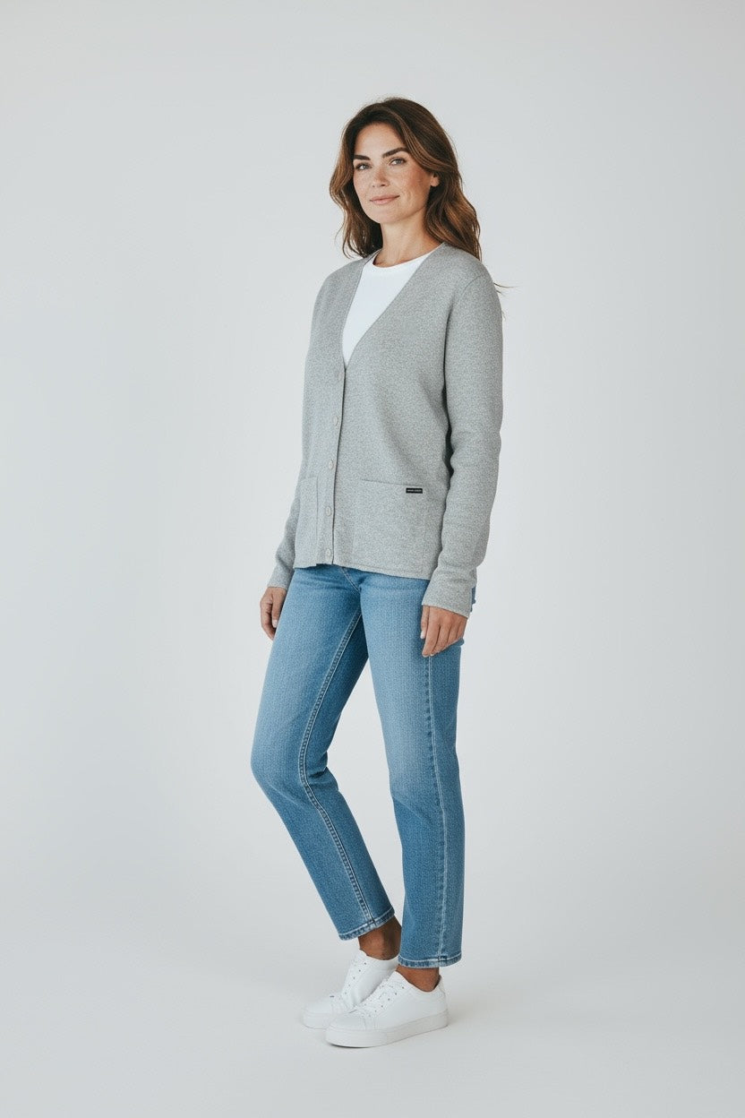 Inspiré de la bernique – ce petit coquillage solidement ancré sur les rochers bretons – le gilet "Bernic" incarne la robustesse et l’élégance naturelle. Tricoté en maille jauge 12 dans notre atelier de Ploubalay (Bretagne), il offre une silhouette féminine et moderne tout en reprenant les codes marins chers à Baie des Caps.