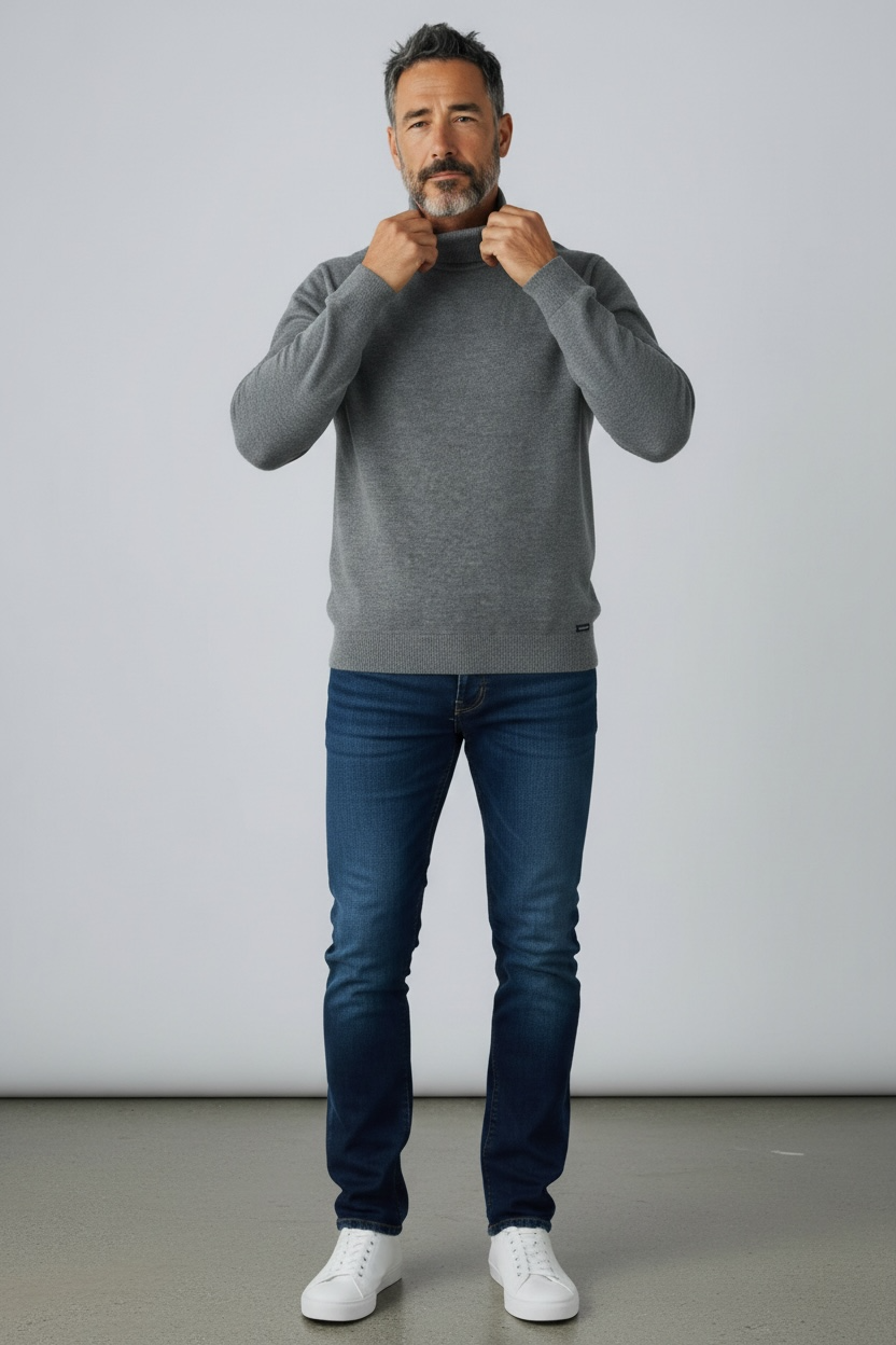 Pull col roulé, ce modèle plait pour sa coupe et sa tenue élégante. En 50% laine mérinos / 50% acrylique, ce pull en maille fine est léger à porter.